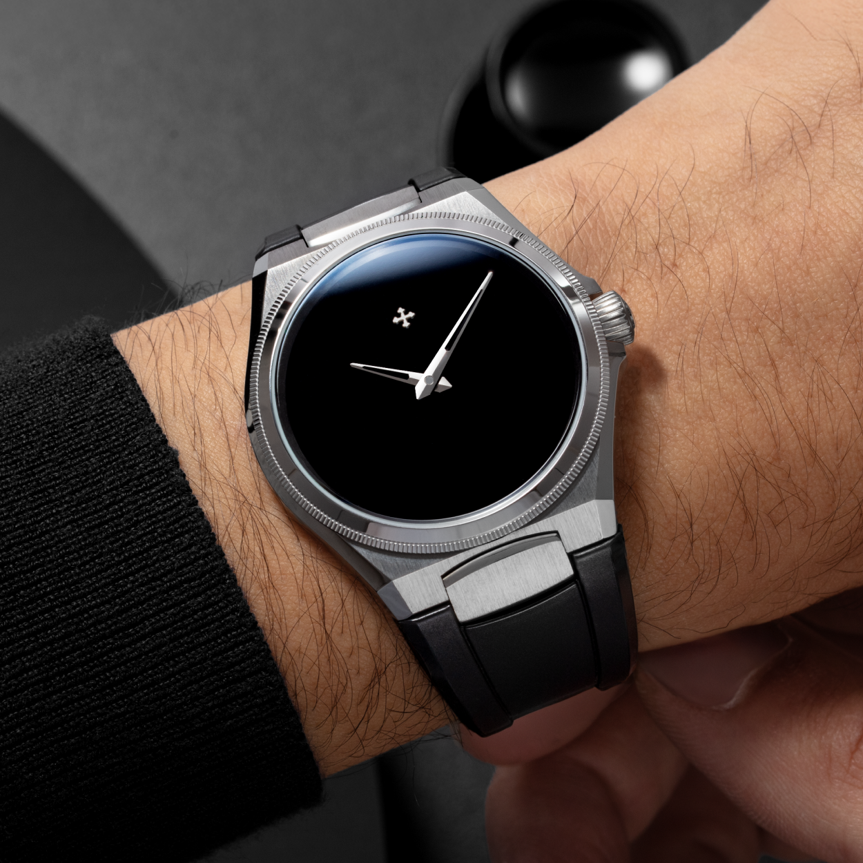 We chose Musou Blackâ„¢, a paint capable of absorbing 99.4% of light, as the starting point for our exploration of the Arsenale Ultrablack. Through rigorous testing and in-depth analysis, we adapted this coating for use with brass, the metal we use for crafting the dials. The result is a watch with a refined aesthetic where minimalism and technique merge, achieving an absolute black that challenges the limits of perception and captures the essence of time.