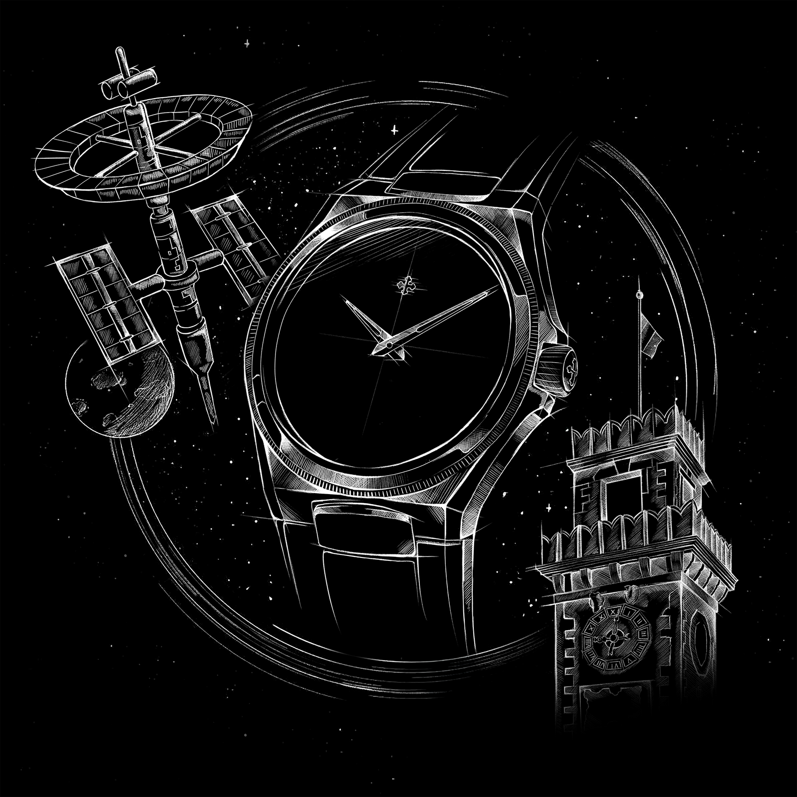 Arsenale Ultrablack is an invitation to explore the unknown, evoking the spirit of adventure and discovery that has energized Venice’s Arsenale for centuries. The caseback features an engraving of a space station immersed in the cosmic vastness, symbolizing a journey toward new horizons—just as the historic Arsenale served as the starting point for bold expeditions into uncharted territories. This link between past and future is expressed through the dial’s absolute black, which evokes infinity and the allure of the unexplored. In this way, Arsenale transforms into a modern, cosmic vision where the drive for knowledge meets ingenuity and courage, celebrating both tradition and innovation.