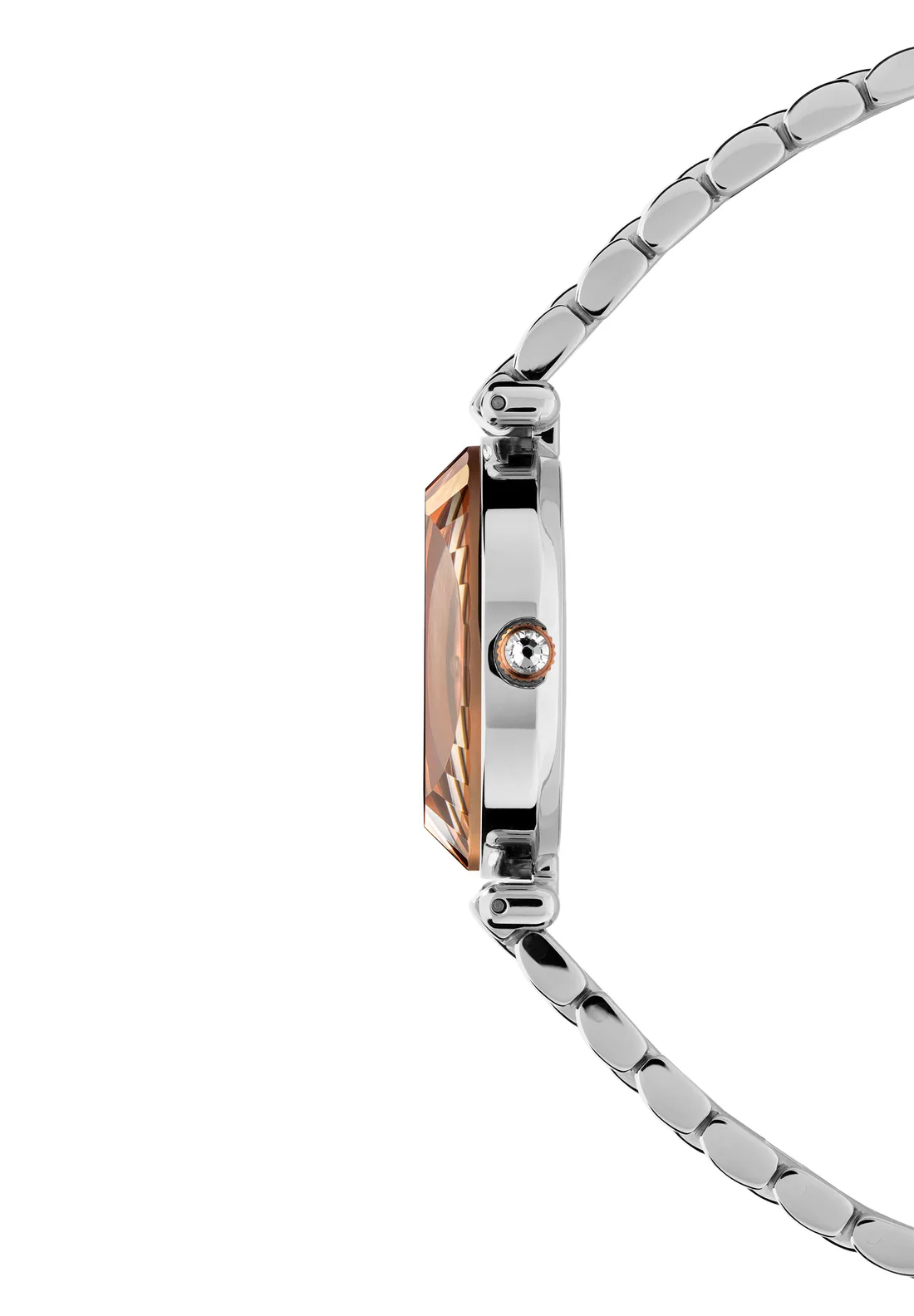 This Swiss Made ladies’ watch, highlights a captivating silver-to-rose-gold degradé dial which creates a modern, dynamic look, enhanced by rose gold hands and 12 rhinestone indices. All set within a 27mm stainless steel case topped with a beautyful diamond-cut crystal. A stylish bicolor Milanese bracelet and 5 ATM water resistance complete the contemporary elegance of this timepiece.