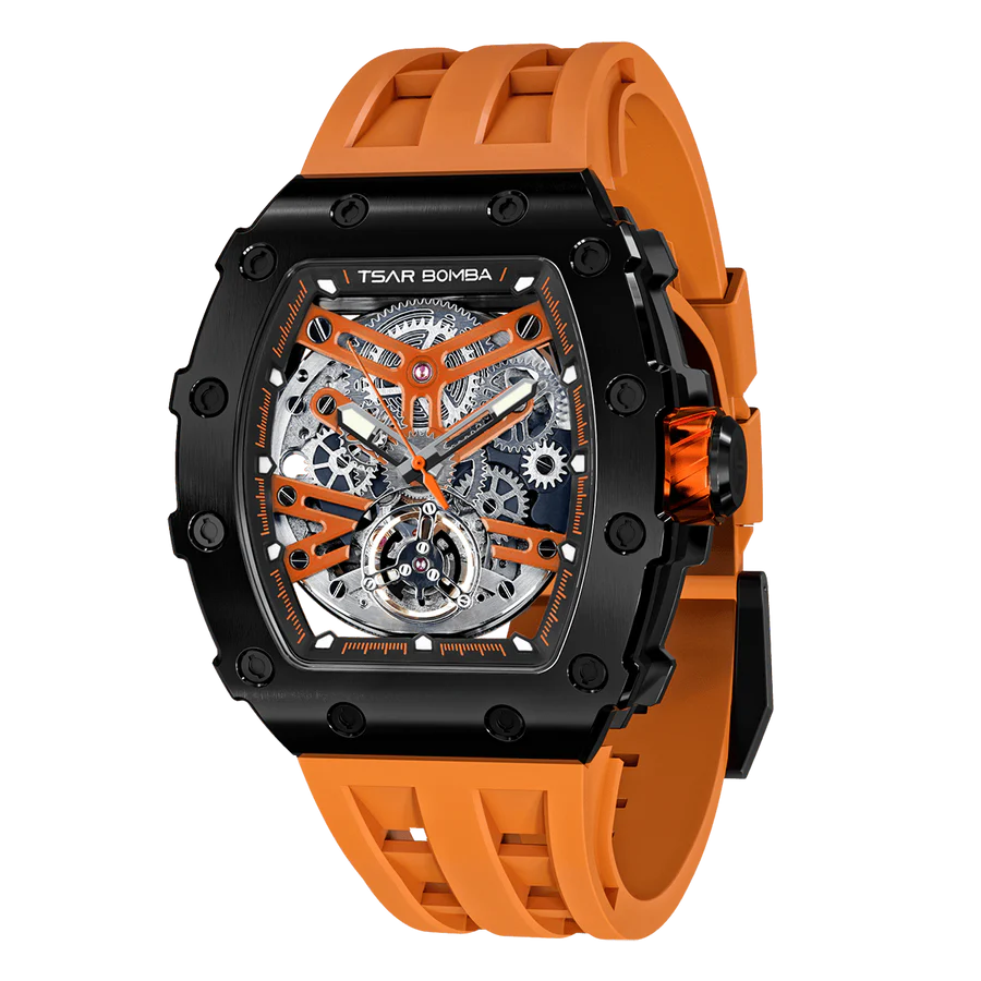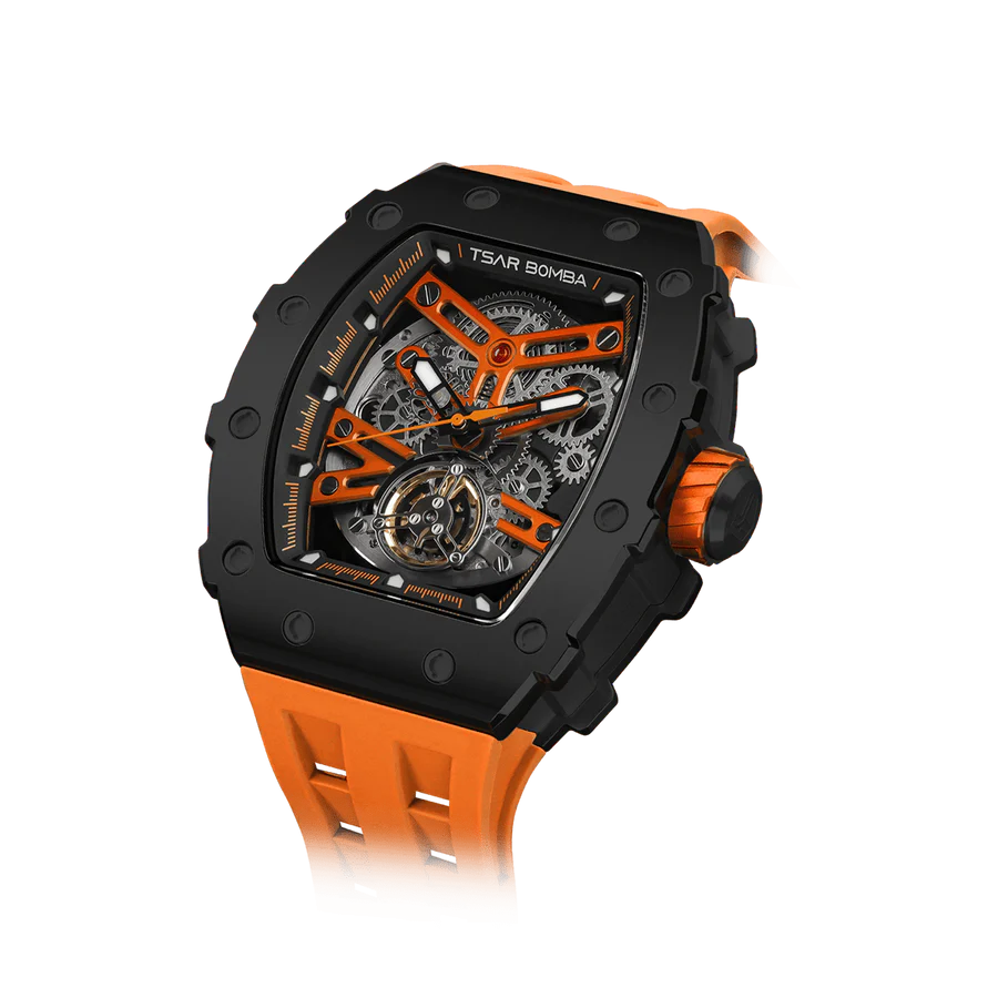 A skeletonized dial is a captivating window into the inner workings of your Tsar Bomba. By artfully revealing the intricate gears, bridges, and balance wheels, our watch designers allow you to fully appreciate the horological engineering and artistry that goes in to every Tsar Bomba.