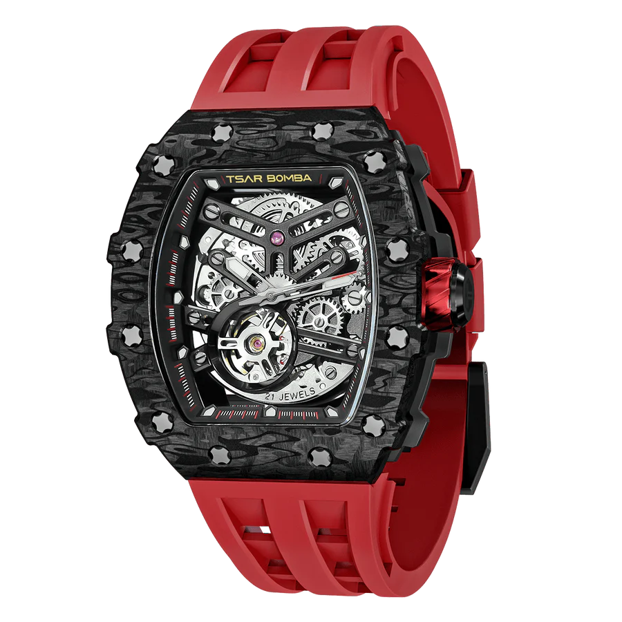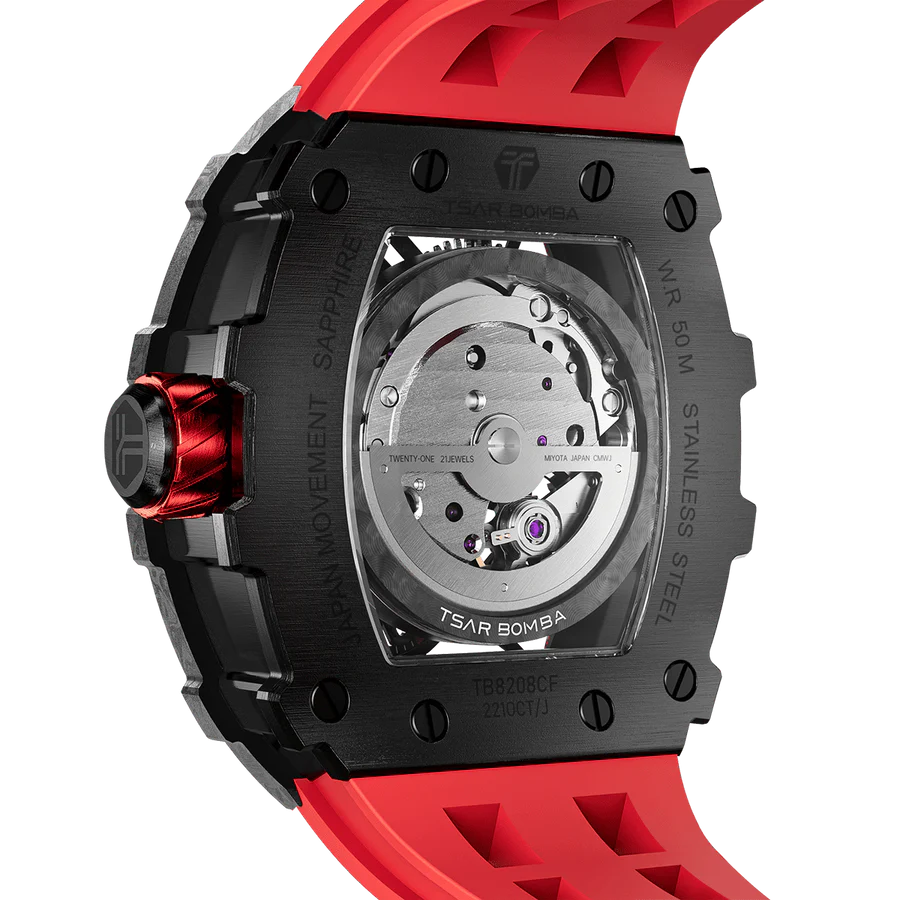 Crafted from resilient silicone rubber, these Tsar Bomba watch straps are built to withstand the rigors of daily life. Their lightweight, flexible design ensures all-day comfort, while their water-proof and sweat-proof properties make them ideal accessories for any adventure your Tsar Bomba accompanies you on.