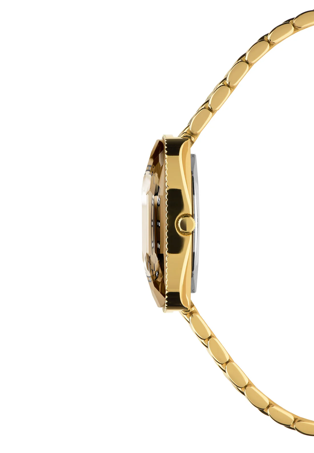 Dive into elegance with this captivating blue timepiece. The signature honeycomb glass cut and sunray dial create a mesmerizing play of light. This Swiss-made watch combines style and precision, featuring a sleek Milanese bracelet and a durable stainless steel case.