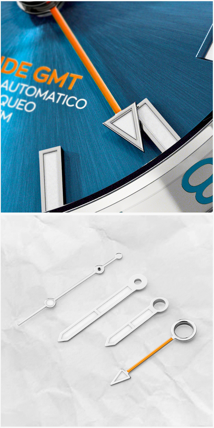 GMT is the acronym for Greenwich Mean Time, which is the local time of the zero meridian of the homonymous London district. The GMT module consists of an additional hand, with an arrow-shaped tip, which completes one revolution every 24 hours. This allows you to keep track of a time zone other than the local time, already marked by the hour hand (which completes a cycle in 12 hours).