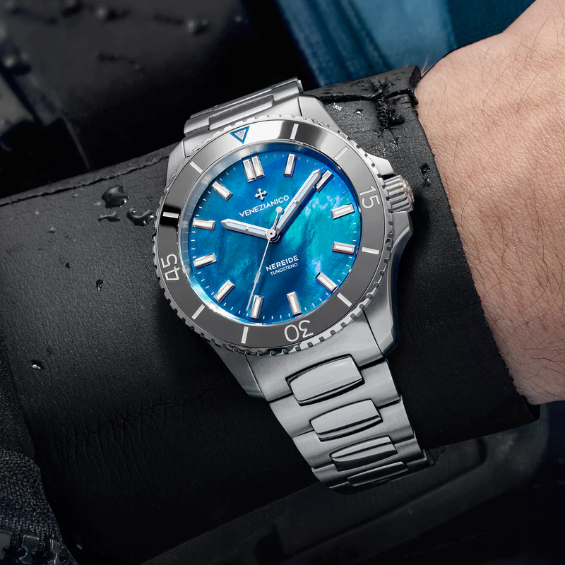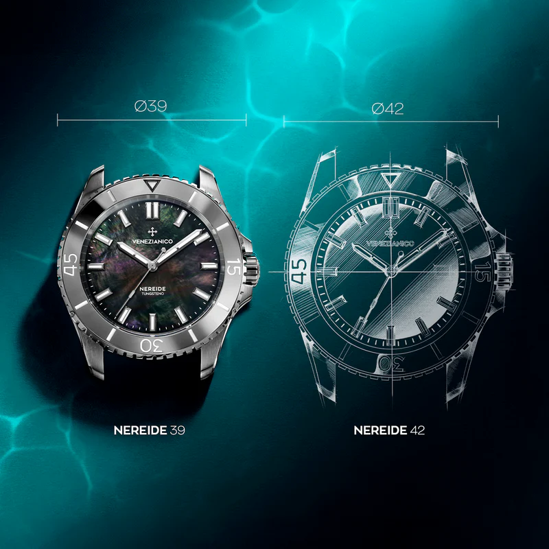 Our dive watch, water-resistant to a depth of 200 meters, takes its name from the Nereide submarine, a marvel of Venetian naval technology. This timepiece is engineered to endure strong stresses, making it particularly well-suited for water sports enthusiasts.