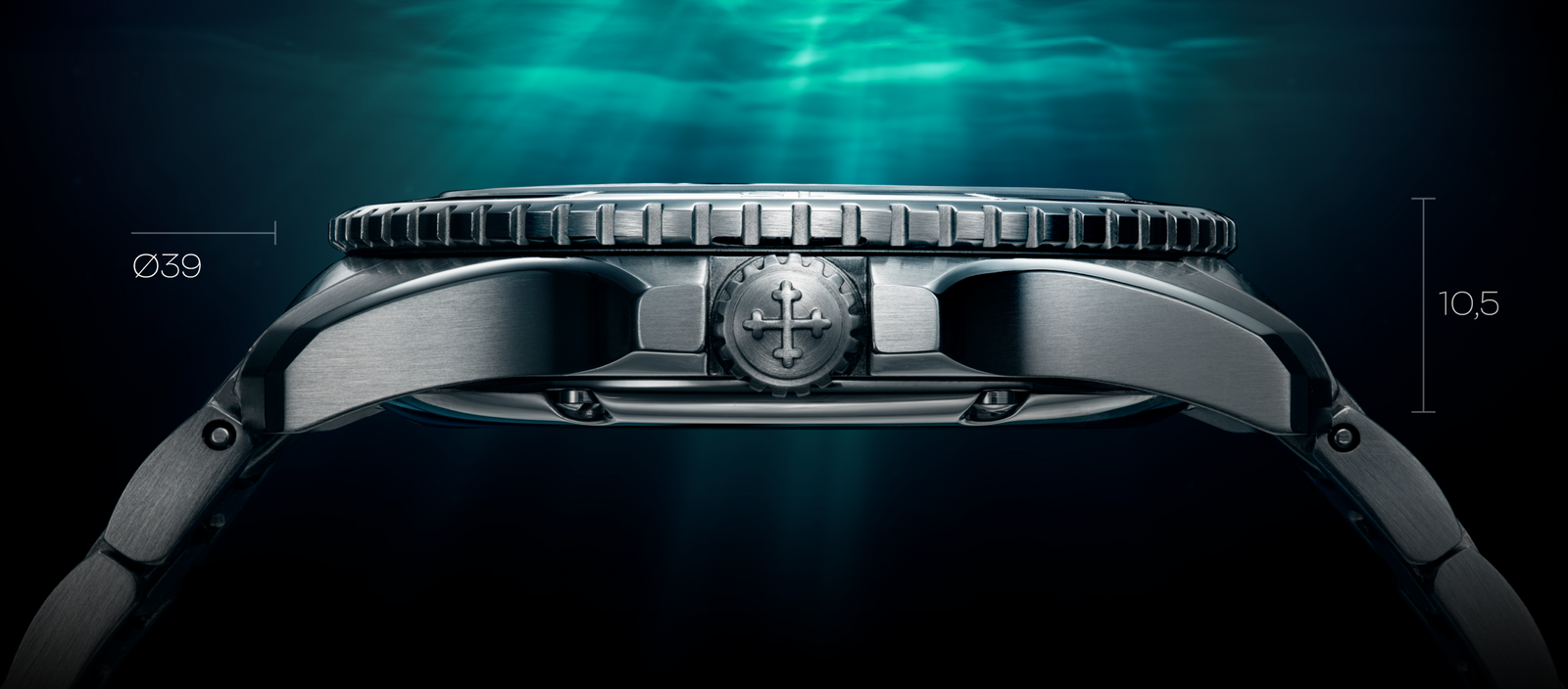 The submarine Nereide, which inspires the entire collection, is depicted submerged in the engraving at the center of the caseback, to remind how this watch doesn’t compromise on underwater performance, retaining the ability to dive up to 200m deep and the rotating bezel that allows monitoring of dive times.
