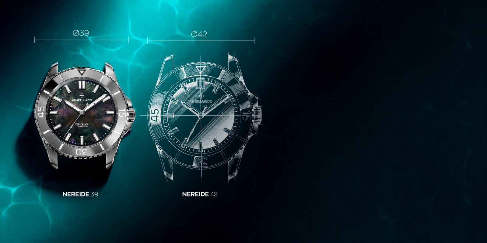 Measuring just 10.5mm thick, our new 39mm Nereide combines elegance and practicality. Thanks to the Miyota 9039 movement, slim and reliable, this watch stands out for its sleek and refined silhouette. The mother-of-pearl dial, available in shades of blue and black, adds a touch of distinctive style. Completed by the tungsten bezel insert, durable and scratch-resistant, the 39mm Nereide offers a perfect balance of form and functionality.